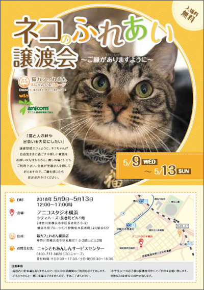 “ネコと人の絆や出会いを大切にしたい”という想いで活動する『猫カフェにゃんくる』様とアニコムで、「ネコのふれあい譲渡会」を開催します!
